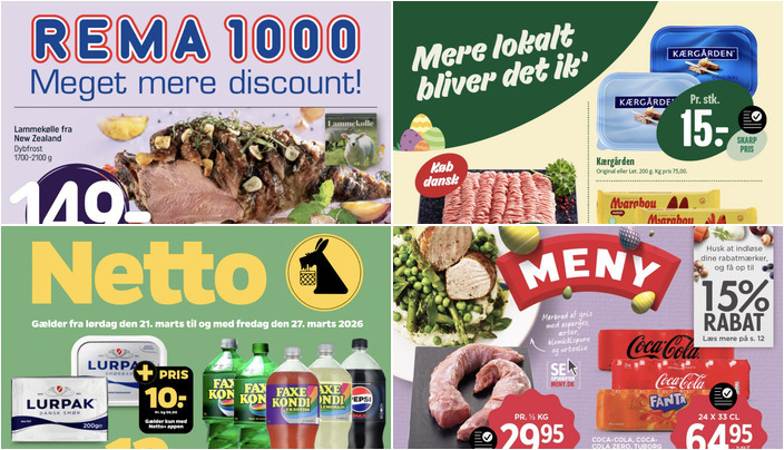 Rema 1000 tilbyder lammekølle fra New Zealand (dybfrost) med en vægt på 1700-2100 g til en pris af 149 kr. Tilbuddet gælder fra søndag den 22. marts til lørdag den 28. marts.